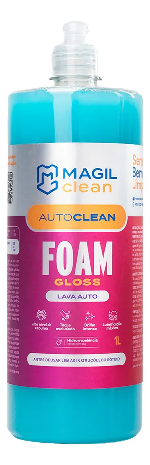 FOAM GLOSS LAVA AUTO 1L MAGIL CLEAN O Foam Gloss é um lava auto premium da linha AutoClean. Sua fórmula exclusiva promove4 hidrorrepelência em um processo de ancoragem de 24h (em latarias descontaminadas) e enceramento na superfície aplicada, oferecendo um brilho intenso com aspectos espelhados e toque aveludado. Sua lubrificação e seu alto nível de espuma o torna ideal para aplicação em latarias automotivas. Possui pH neutro, proporcionando uma limpeza eficaz contra sujeiras e fuligens presentes em todas as superfícies do veículo, sem remover ceras, selantes, vitrificadores ou qualquer outro tipo de proteção. Não danifica peças plásticas, emborrachadas, metálicas ou de alumínio. Características: • Alto nível de espumação; • Toque aveludado; • Brilho intenso; • Hidrorrepelência; • Diluição: 1/10 ou 1/20 para mais repelência, brilho e espuma densa. 1/60 para uso na SnowFoam com alta pressão. 1/200 para lavagem com balde. Modo de usar: • Agite antes de usar. • Ajuste a diluição de acordo com sua necessidade. • Remova o excesso de detritos com uma pré-lavagem. • Utilize uma snow foam ou pano de microfibra para aplicar o produto. • Esfregue suavemente a área aplicada e em seguida efetue o enxágue.