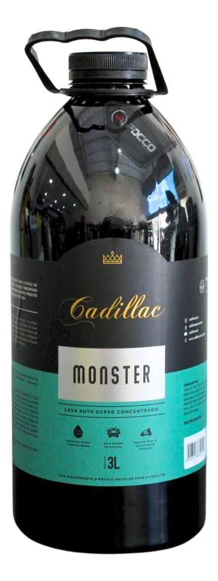 LAVA AUTO MONSTER 3L 1:300 CADILLAC Não remove cera, não danifica partes plásticas, pinturas, borrachas, vidros e vinil. Lava sem acusar danos. Um Shampoo com pH Neutro que não irá remover a cera, apenas remover as sujidades que estão sobre a cera. Produto ideal para limpeza externa de seu veículo. Sua formulação é uma mistura sinergética de tensoativos, o que garante alta eficiência para limpar a lataria de seu carro sem agredir. Além disso, por ser super concentrado, apresenta excelente rendimento. Para limpeza de superfícies muito sujas, pode ser utilizado em maior concentração. Características: • Shampoo Automotivo; • Diluição: até 1:300 (1 parte do produto, para 300 de água); • Possui fragrância suave de capim limão; • Pode ser utilizado em canhão de espuma e tornador snow foam; • Não remove cera; • pH neutro. Modo de usar: • Certifique-se de que a superfície esteja fria e ao abrigo do sol. • Dilua o shampoo em água de acordo com a proporção desejada. • Inicie a lavagem com o auxílio de uma luva de microfibra para lavagem, sempre começando pelas partes altas do veículo. • Mergulhe a luva na solução e esfregue suavemente até completar todo o veículo. • Enxágue em até a retirada de todo o produto. • Após o enxágue, efetue a secagem do veículo com o auxílio de uma toalha de secagem.