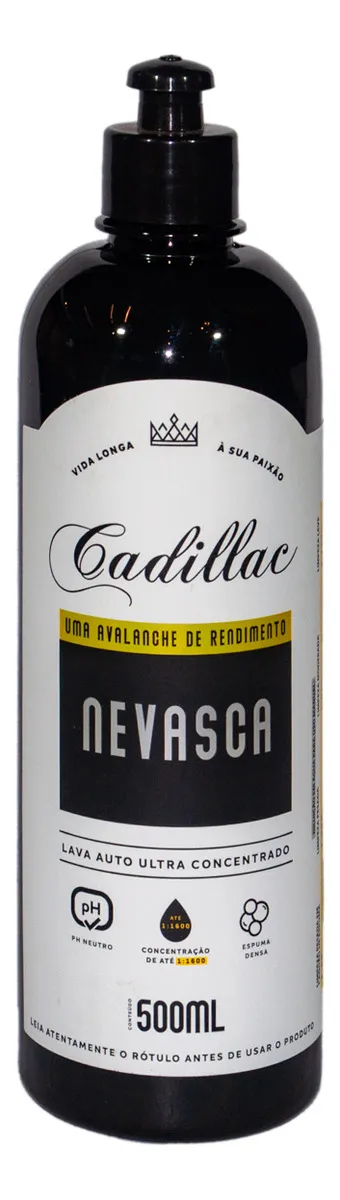 O Cadillac Nevasca é um shampoo automotivo altamente concentrado, projetado para oferecer uma limpeza completa e eficiente com excelente economia. Sua fórmula permite diluições de até 1:1600, garantindo um ótimo aproveitamento. Mesmo em pequenas doses, proporciona lubrificação ideal, facilitando o processo de lavagem sem causar microarranhões na pintura. Com pH neutro, é seguro para veículos protegidos com vitrificadores, selantes e ceras, preservando a durabilidade dessas proteções. Diluições sugeridas: -Limpeza pesada com canhão de espuma: 1:50 -Limpeza intensa: 1:300 -Limpeza moderada: 1:800 -Limpeza leve: 1:1600 Instruções de uso: Agite bem antes de utilizar. Certifique-se de que o veículo esteja frio e em local sombreado. Prepare a solução seguindo as proporções indicadas no rótulo. Remova resíduos soltos com um jato de água, aplique a solução utilizando uma luva, toalha de microfibra ou canhão de espuma, e esfregue suavemente. Enxague completamente e seque o veículo para obter um acabamento impecável.