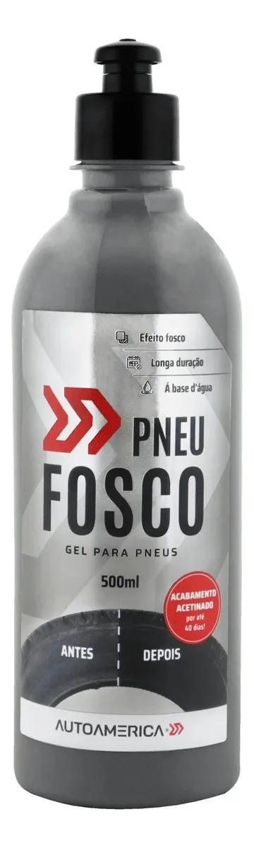 O Gel Para Pneus Pneu Fosco 500ml da Autoamerica é a solução ideal para quem busca manter os pneus do carro ou caminhonete com aparência de novos. Este condicionador, à base d'água, proporciona uma longa duração e um efeito fosco que realça a estética do veículo. Com uma fragrância de carro novo, a aplicação do gel não só embeleza, mas também cria uma fina camada de proteção que resiste até 40 dias, garantindo que seus pneus fiquem sempre impecáveis. O produto é seguro, não inflamável e foi desenvolvido especialmente para uso em exteriores. Com um formato prático de gel, é fácil de aplicar e ideal para quem deseja cuidar do seu veículo com qualidade. Disponível em um tamanho conveniente de 500 ml, é perfeito para quem valoriza a manutenção e o cuidado do automóvel.