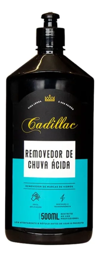 O Removedor de Chuva Ácida Cadillac 500ml é a solução ideal para manter a transparência e a estética dos vidros do seu veículo. Desenvolvido especificamente para eliminar manchas causadas por chuva ácida e componentes químicos, este produto atua rapidamente, utilizando afinidade química para remover os compostos impregnados. Com um volume de 500 mL, ele é prático e fácil de usar, garantindo eficiência e segurança na aplicação. A marca Cadillac é sinônimo de qualidade, e este removedor não é exceção. Com sua fórmula inovadora, você poderá restaurar a clareza das superfícies de vidro do seu automóvel, preservando sua aparência e aumentando a visibilidade. Não deixe que a chuva ácida comprometa a beleza do seu carro; escolha o Removedor de Chuva Ácida Cadillac e mantenha seus vidros impecáveis.