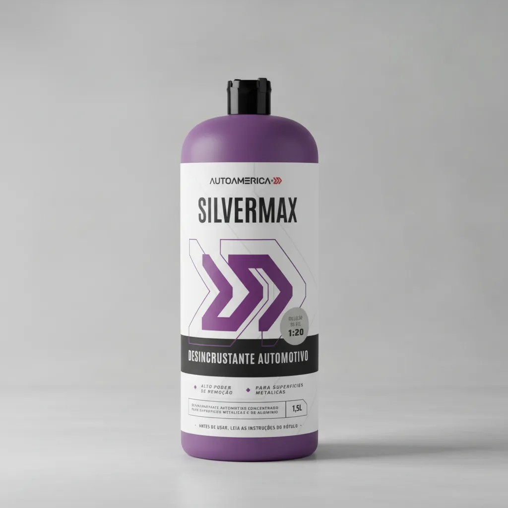 Silvermax Desincrustante Ácido 1,5L Autoamerica O Silvermax da Autoamerica é um desincrustante ácido profissional, desenvolvido para remover sujeiras incrustadas difíceis de serem eliminadas, como ferrugem, óxidos, calcário e resíduos metálicos. Sua formulação concentrada e de alto rendimento garante excelente performance em aplicações pesadas, especialmente em superfícies metálicas como rodas, chassis, baús de alumínio e carrocerias em inox. Modo de Uso// Preparação: Utilize luvas e óculos de proteção ao abrir e manusear o produto - seguindo as travas de segurança na tampa. Diluição recomendada// > Leve: até 1:20 > Média intensidade: até 1:10 > Pesada: até 1:5 Aplicação: Pulverize sobre a superfície contaminada com um borrifador resistente a produtos ácidos. Ação: Deixe agir por alguns instantes, sem permitir que o produto seque. Remoção: Enxágue completamente com jato d´água abundante (máquina ou mangueira). Benefícios// Concentrado e potente: Rende muito com pequenas quantidades e remove sujeiras incrustadas com eficiência. Uso profissional: Projetado para uso em oficinas, centros automotivos e frotas - venda direta ao consumidor final não permitida. Agilidade: Ação rápida e eficaz em superfícies metálicas, simplificando a limpeza pesada.