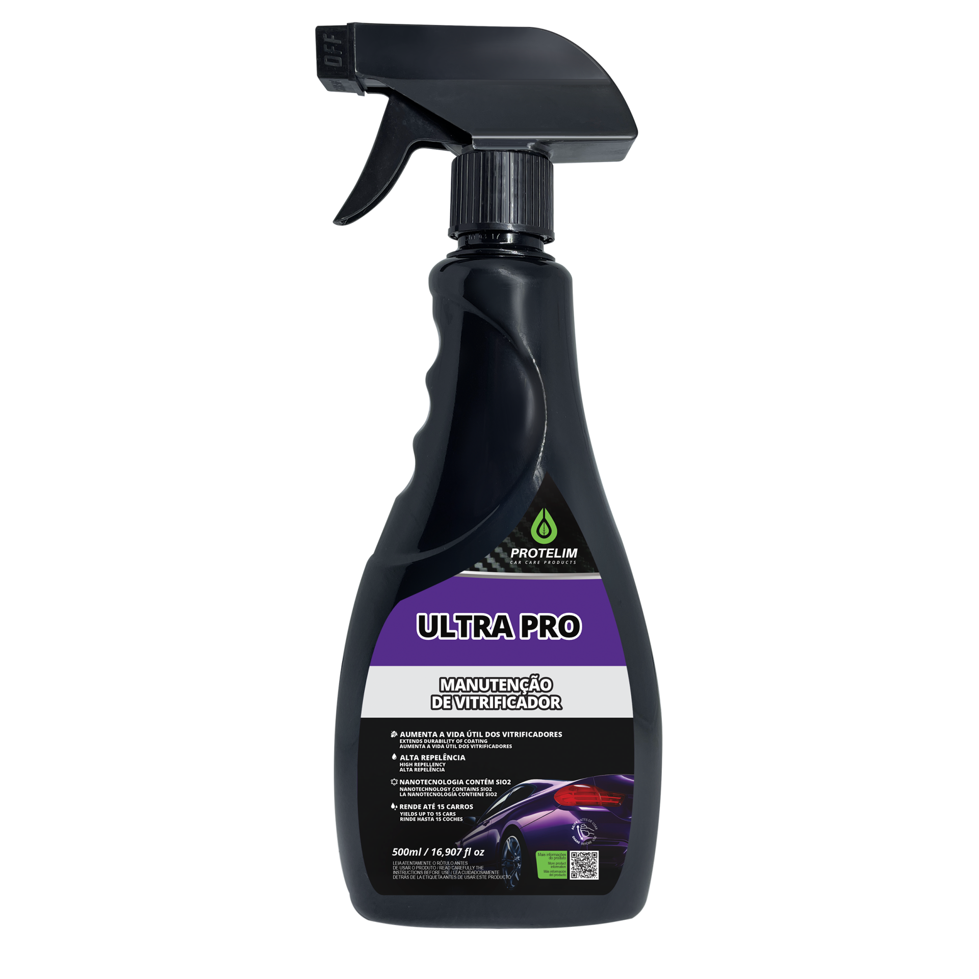ULTRA PRO é um produto de alta performance e tecnologia que forma um escudo protetor à base de sílica (SiO2). Proporciona um irresistível toque de suavidade na superfície da pintura de seu automóvel, moto, barco ou aeronave. Tem formulação avançada à base de Silanos e Siloxanos (polímeros derivados do Silício), promove ainda mais proteção na pintura de seu veículo. Ele é altamente indicado para manutenção de vitrificação (Coating), pois realça o toque de seda, o brilho intenso e profundo, e mantém seu investimento com a vitrificação da pintura por muito mais tempo. ULTRA PRO pode ser aplicado em qualquer tipo de superfície, mesmo as que não foram tratadas com vitrificadores, podendo durar até 90 dias.