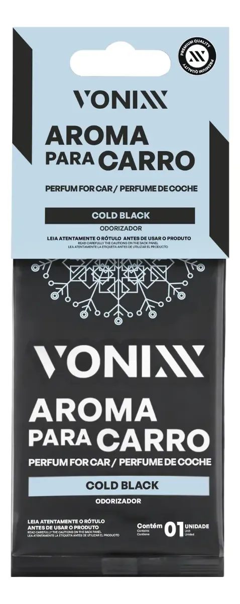 AROMINHA PARA CARRO COLD BLACK AROMATIZANTE PARA VEICULO 1- AROMA PRA CARRO COLD BLACK VONIXX O aroma foi desenvolvido para perfumar diversos ambientes, tais como veículos, guarda-roupas, quartos, banheiros, escritórios, etc. O produto possui fragrância de alta qualidade, o aroma odoriza o ambiente por até 7 semanas, quando utilizado da forma indicada. - COMPOSIÇÃO: Papel celulose e essência. - OBSERVAÇÃO: Remova o plástico lentamente para uma maior duração do aroma! DURAÇÃO: - 7 SEMANAS MODO DE USO: 01- Remova o plástico lentamente para controlar a intensidade do aroma e aumentar sua durabilidade.